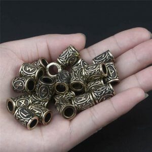 A complete viking hair bead set containing 24 pieces, each with a unique rune. Perfect to decorate your beard or hair the classic viking way. Delivered Free of charge to any UK address. Get Yours Today for just £22.95 which is less than £1 per rune!