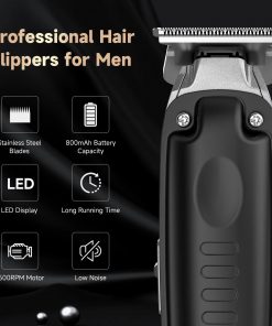 Professional Cordless Hair Clippers for Men & Kids – Rechargeable Hair Cutting Kit with LED Display, Quiet Rotary Motor, Stainless Steel Blades, Fast Charging, Waterproof Electric Hair Trimmer