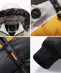 Los hombres de primera calidad de invierno gruesa cálida chaqueta parka con cuello de piel | Classic Casual Windbreaker abrigo de algodón