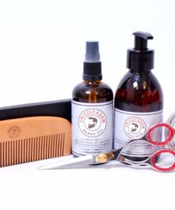 Set de regalo perfecto para hombre - Champú para barba 200ml, Bálsamo para barba 60ml, Aceite para barba 100ml, Tijeras para barba y Peine para barba Ideal para el cuidado de la barba y el bigote ...
