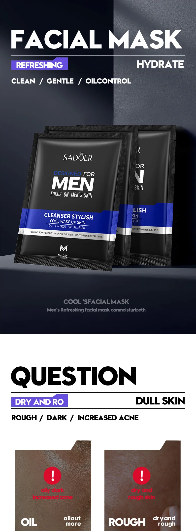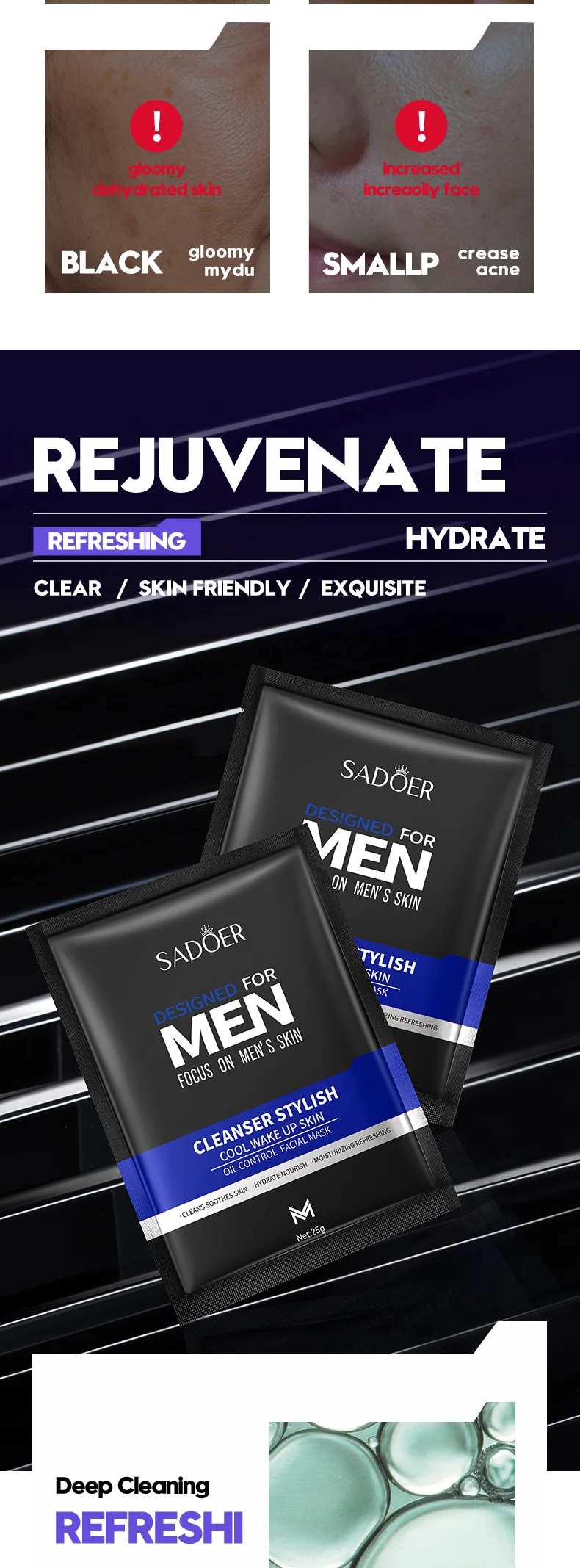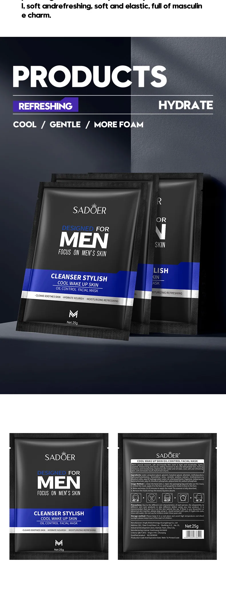 5/10pcs SADOER Men’s Face Mask Facial Moisturizing Oil Control Anti-aging Hydrating Facial Masks Face Sheet Mask Skin Care