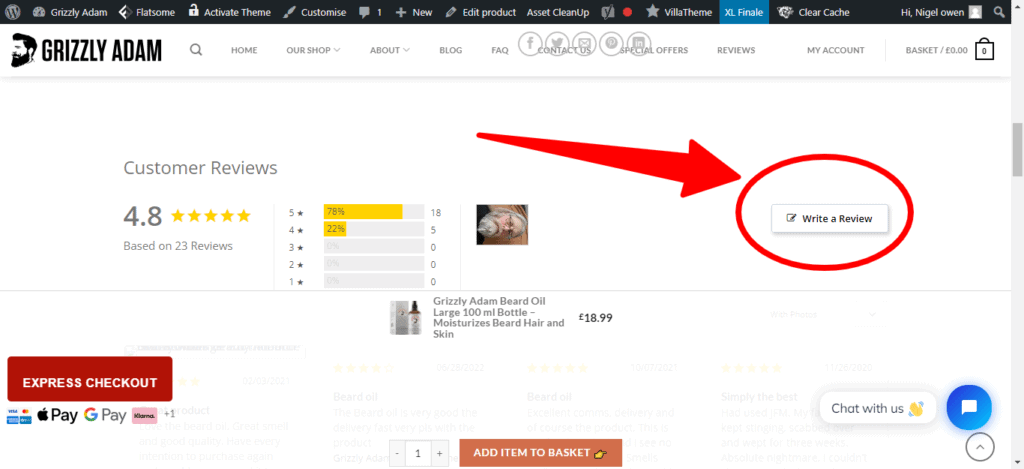 Hence, the reason I decided to give you a little bribe 😉 cheeky I know but who doesn’t like free stuff? All I ask is that you head to our shop and find the product page you purchased or have used in the past. scroll half way down and click on the reviews tab then write a review as highlighted in the image below: