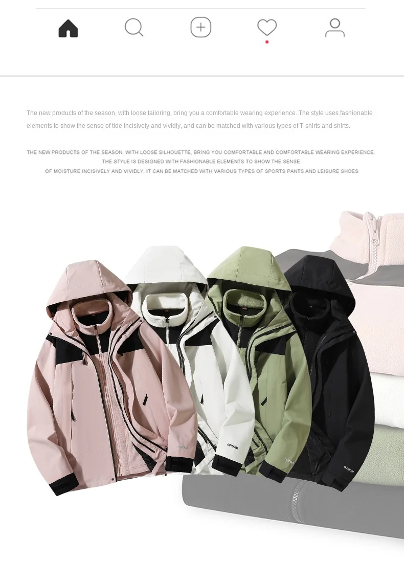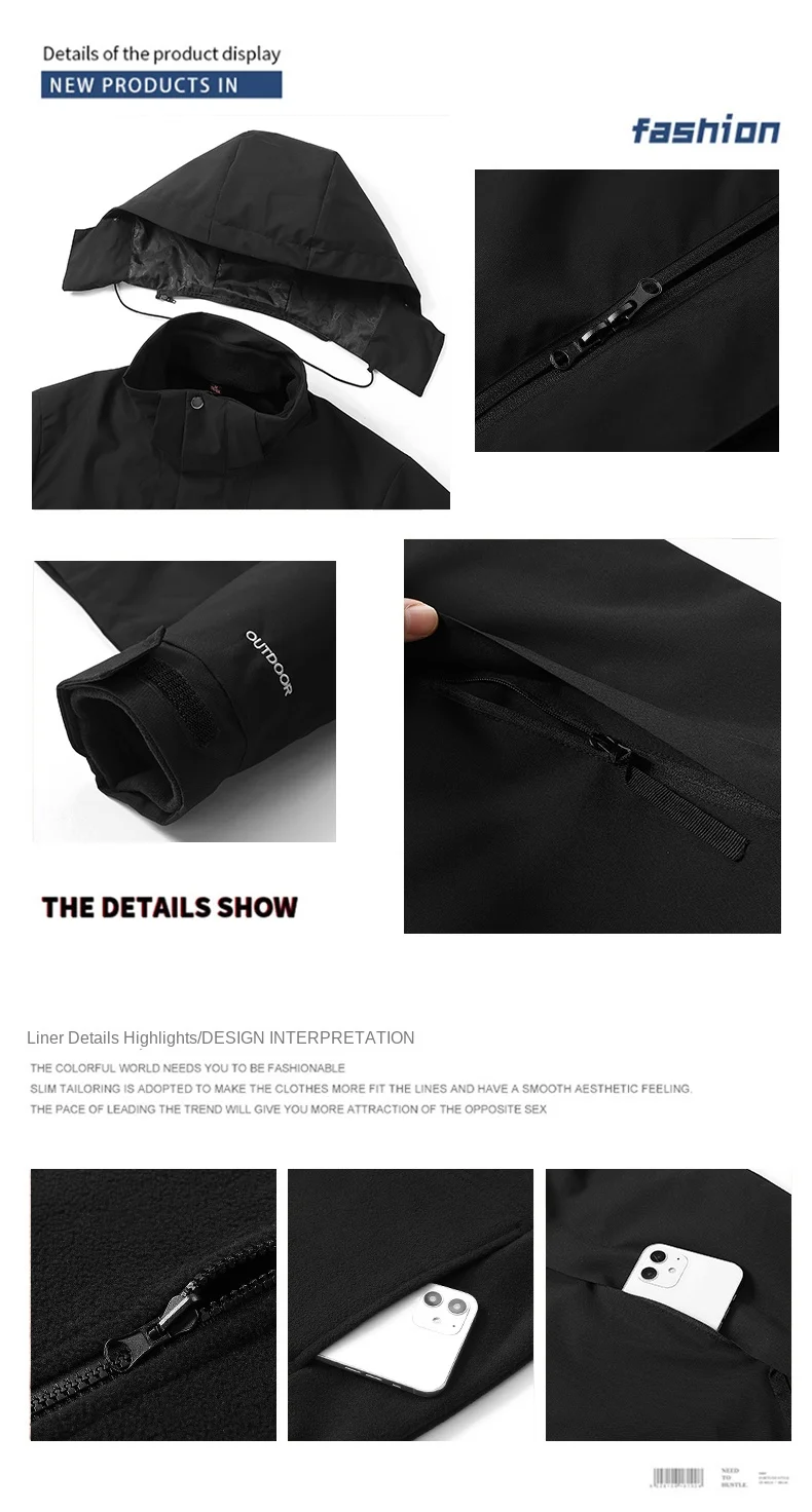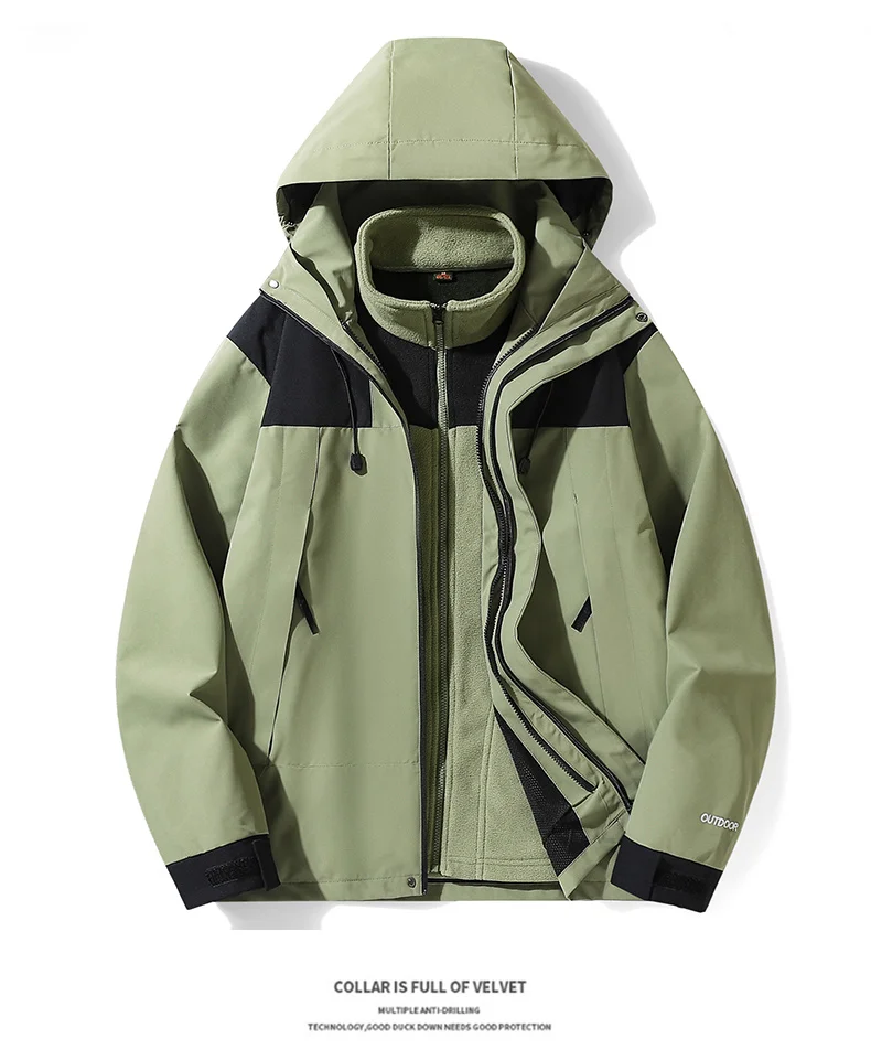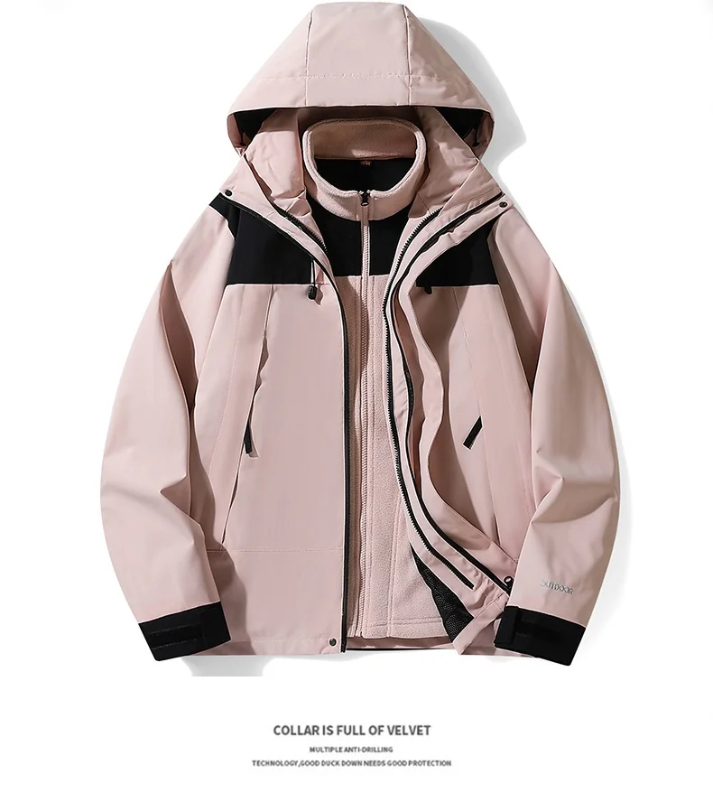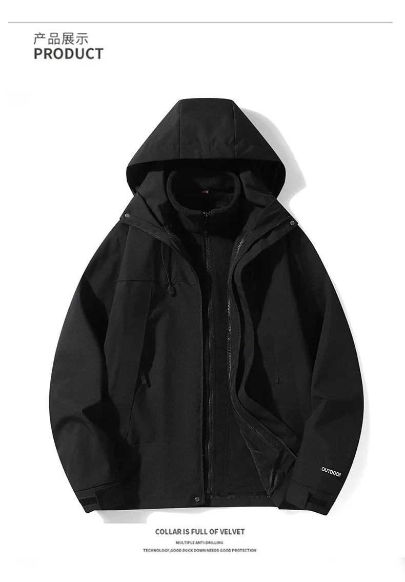 Unisex 3-in-1 Waterproof Hardshell Outdoor Jacket – Warm, Antifouling & Cold-Resistant for Hiking & Mountaineering